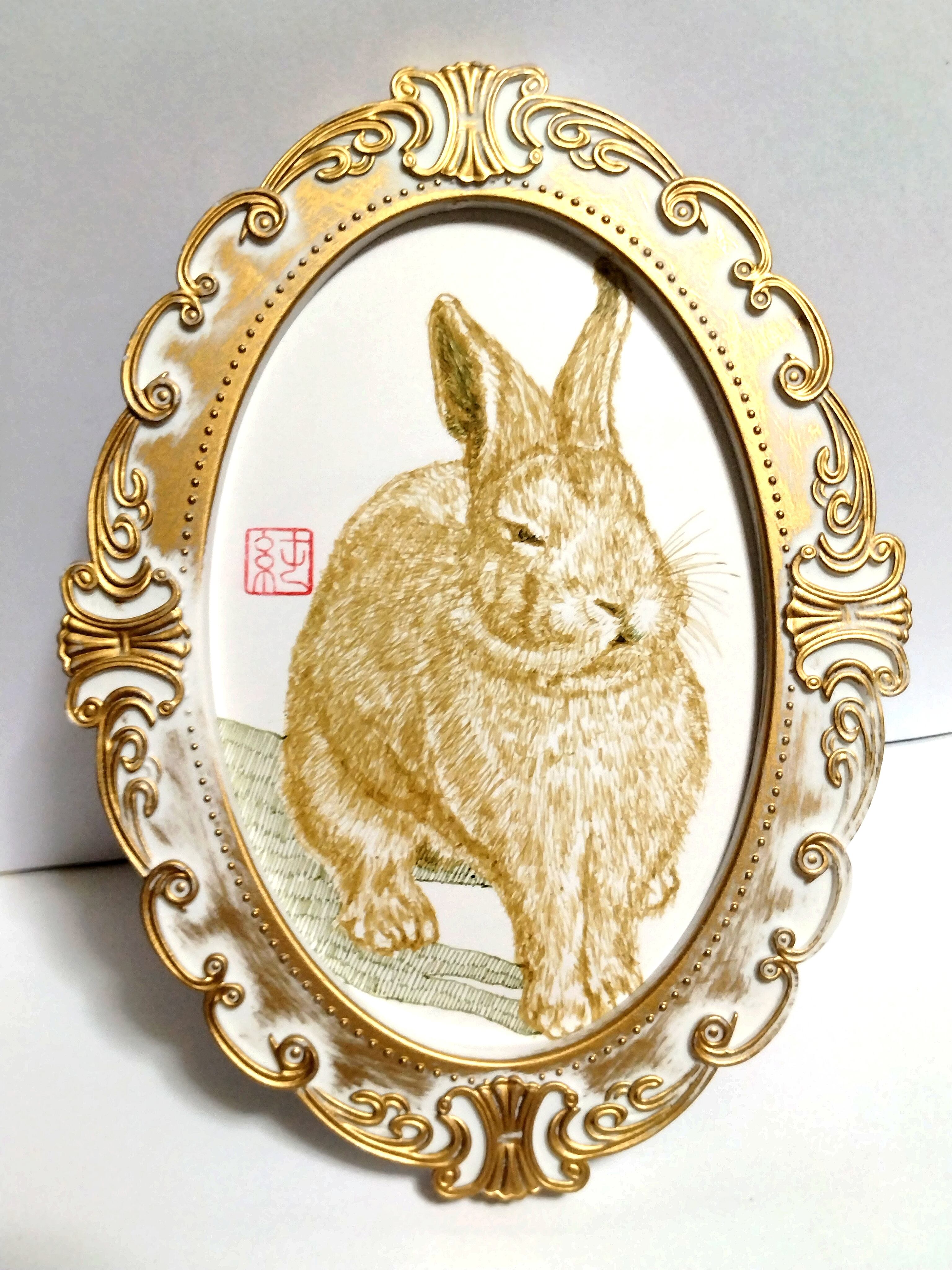 気持ちよく日差しを浴びているウサギさんを描きました